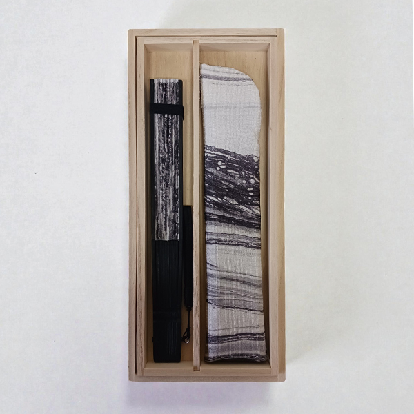 日本の伝統技法「墨流し」によって染め上げた扇子です。